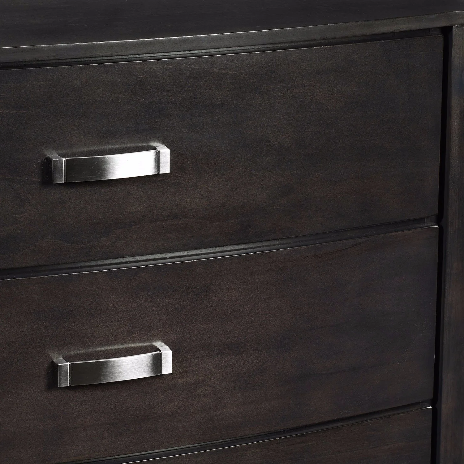 Close-Up. From the opening to the closing credits, the Cinema chest is sure to satisfy your taste for style and sophistication. The brushed nickel hardware and gently bowed front provide subtle star power, while the five storage drawers supply ample space for stowing clothes and personal items. Off-the-floor styling and slightly tapered feet round out the big-screen look. Customer assembly required.;;;;Cinema Commode 5 tiroirs - anthracite;;;;D’un bout à l’autre de ses avantages, notre commode de la collection Cinema est certaine de satisfaire votre goût pour le style et l’élégance. Les poignées en nickel brossé et les façades légèrement bombées fournissent une délicate puissance artistique, tandis que cinq tiroirs de rangement offrent beaucoup d’espace de rangement pour vos vêtements chauds et articles personnels. Le style surélevé et les pattes légèrement effilées complètent l’aspect grand écran.