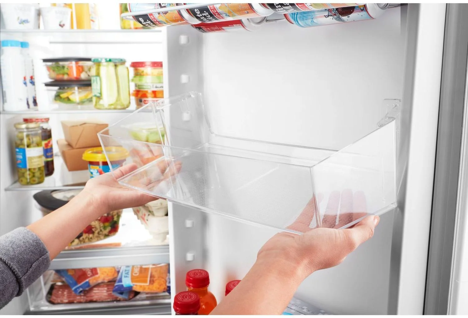 This Whirlpool side-by-side refrigerator is finished in a sleek, monochromatic stainless steel for a chic, modern look in your kitchen. Boasting 22 cu. ft. of storage capacity between the fresh food area and freezer, this fridge features LED lighting throughout and smooth doors with hidden hinges for a continued seamless design. Easily accessible, interior electronic touch controls allow you to adjust the refrigerator settings.;;;;Whirlpool Réfrigérateur 21,7 pi³ côte-à-côte inox WRS312SNHM;;;;Ce réfrigérateur Whirlpool côte-à-côte d’une capacité de 21,7 pi3 est un ajout élégant et moderne à toute cuisine avec sa finition en acier inoxydable résistant aux traces de doigts. Doté de portes aux contours arrondis et de poignées assorties, ce réfrigérateur offre un look impeccable de la tête aux pieds. Un éclairage DEL haute efficacité et des tablettes en verre anti-débordement assurent que le réfrigérateur est tout aussi commode qu’élégant.