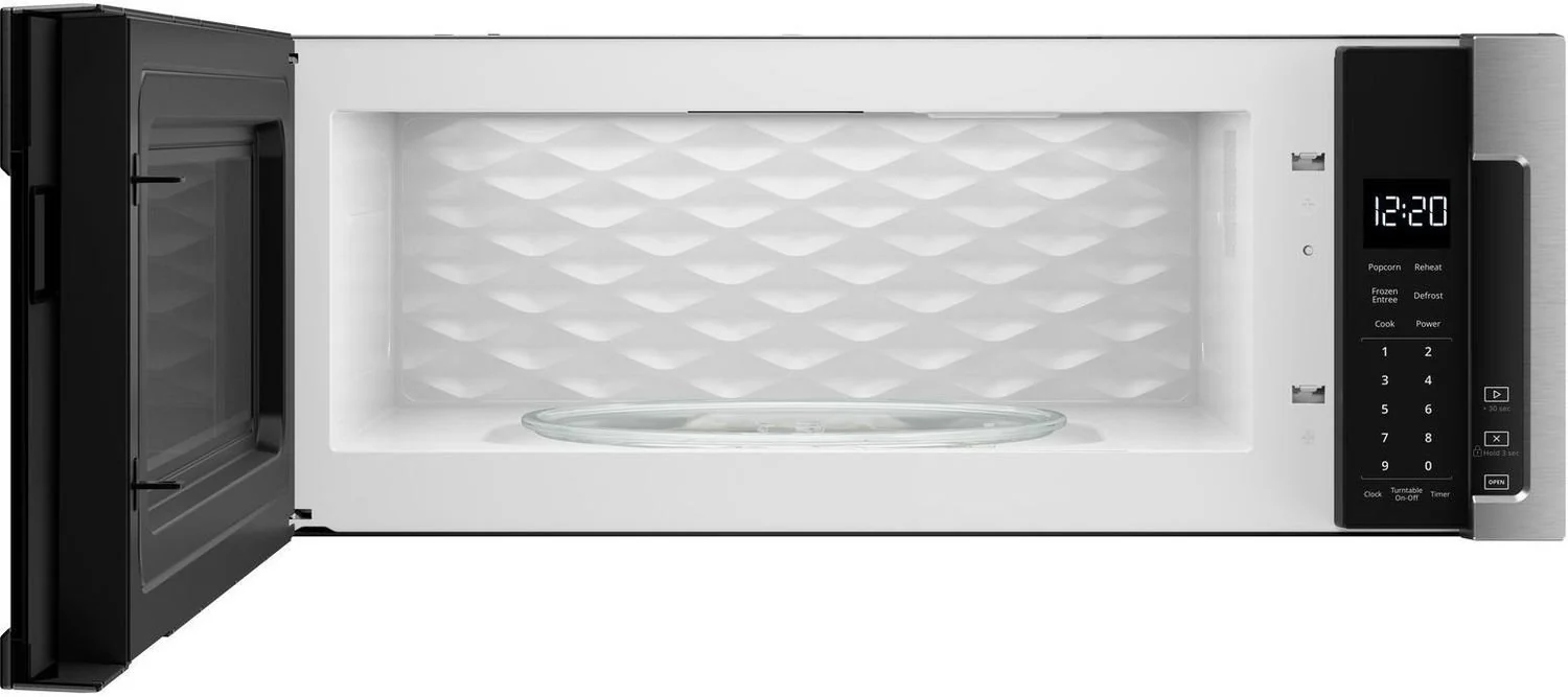 Free up counter space without compromising on style or function with this Whirlpool over-the-range microwave, the perfect solution for today’s streamlined kitchens. Designed with a low-profile frame, it slides seamlessly into the same space as an under-cabinet hood while giving you 1.1 cu. ft. of purposeful capacity—plenty of room for tall glasses, wide plates, and oversized bowls. The 400 CFM motor class high-performance venting helps clear away smoke, steam, and kitchen odours quickly, keeping your space fresh and welcoming. Everyday convenience is built in with the Tap-To-Open Door, which lets you access the microwave with a gentle tap from your wrist or elbow—no need to put anything down. Inside, concealed touch controls are hidden behind the microwave door for a modern, minimal look and easy cleaning. From late-night snacks to big-family dinners, this over-the-range microwave blends practicality with sleek design, elevating both your cooking routine and your kitchen aesthetic with ease.;;;;Whirlpool Four micro-ondes avec hotte intégrée 1,1 pi³ à profil bas acier inoxydable YWML55011HS;;;;Libérez de l'espace sur le comptoir sans compromettre le style ou la fonction avec ce four micro-ondes avec hotte intégrée de Whirlpool, la solution parfaite pour les cuisines épurées d'aujourd'hui. Conçu avec un cadre à profil bas, il se glisse sans problème dans le même espace qu'une hotte sous l'armoire tout en vous offrant 1,1 pi cu de capacité utile - amplement d'espace pour les grands verres, les assiettes larges et les bols surdimensionnés. Le moteur de 400 PCM et la ventilation haute performance aident à éliminer rapidement la fumée, la vapeur et les odeurs de cuisine, pour que votre espace reste frais et accueillant. La commodité au quotidien est assurée par la porte ‘toucher pour ouvrir’, qui vous permet d'accéder au four micro-ondes d'un simple toucher du poignet ou du coude, sans avoir besoin de poser quoi que ce soit. À l'intérieur, les commandes tactiles sont dissimulées derrière la porte du four à micro-ondes pour un aspect moderne et minimal et un nettoyage facile. Qu'il s'agisse de collations tardives ou de repas en famille, ce four micro-ondes avec hotte intégrée allie praticité et design élégant, améliorant ainsi votre routine culinaire et l'esthétique de votre cuisine en toute simplicité.