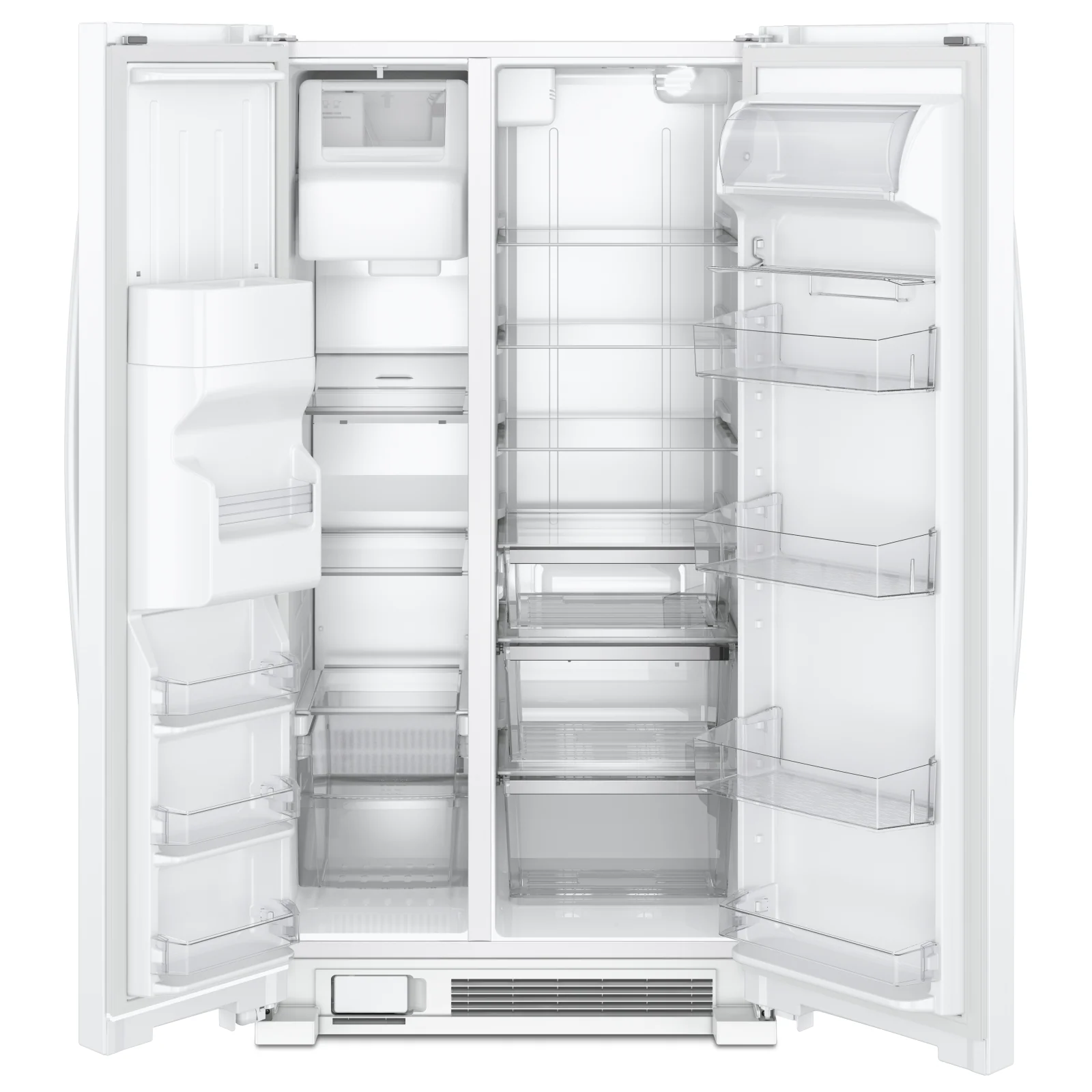 This Whirlpool side-by-side refrigerator is finished in a crisp white for a bright, modern look in your kitchen. Equipped with an exterior ice and water dispenser that operates with a filter, this fridge offers superior convenience. Smooth, contoured doors continue the sleek design, while a can caddy bin and a utility compartment provide added functionality. Tap touch electronic controls are as easily cleaned as they are used.;;;;Whirlpool Réfrigérateur 21,4 pi³ côte à côte blanc WRS321SDHW;;;;Ce réfrigérateur Whirlpool côte à côte d’une capacité de 21,4 pi3 est un ajout élégant et moderne à toute cuisine avec sa finition blanc brillant. Doté de portes aux contours arrondis et de poignées assorties, ce réfrigérateur offre un look impeccable de la tête aux pieds. Un éclairage DEL haute efficacité, des tablettes en verre anti-débordement et un distributeur externe d’eau et glace assurent que le réfrigérateur est tout aussi commode qu’élégant.